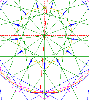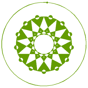 Copy circle 15 13 times, to the intersections of rays 8 and circle 14.