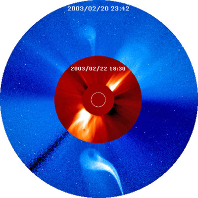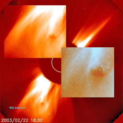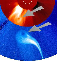 SOHO-C3 image left shows what appears to be a portion of