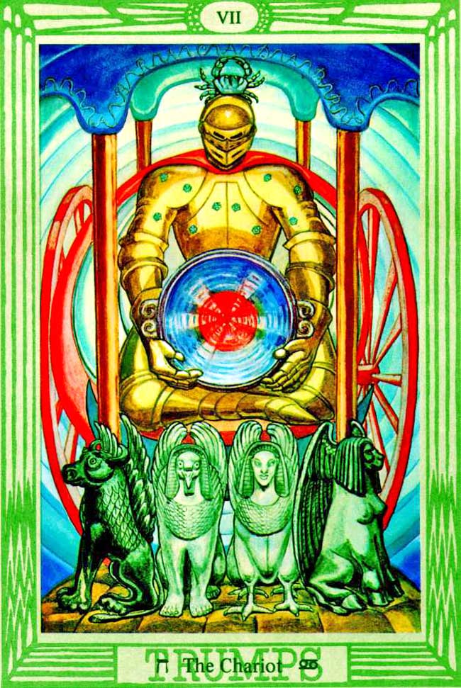 Atu VII refers to the zodiacal sign of Cancer, the sign into which the Sun moves at the Summer Solstice.
