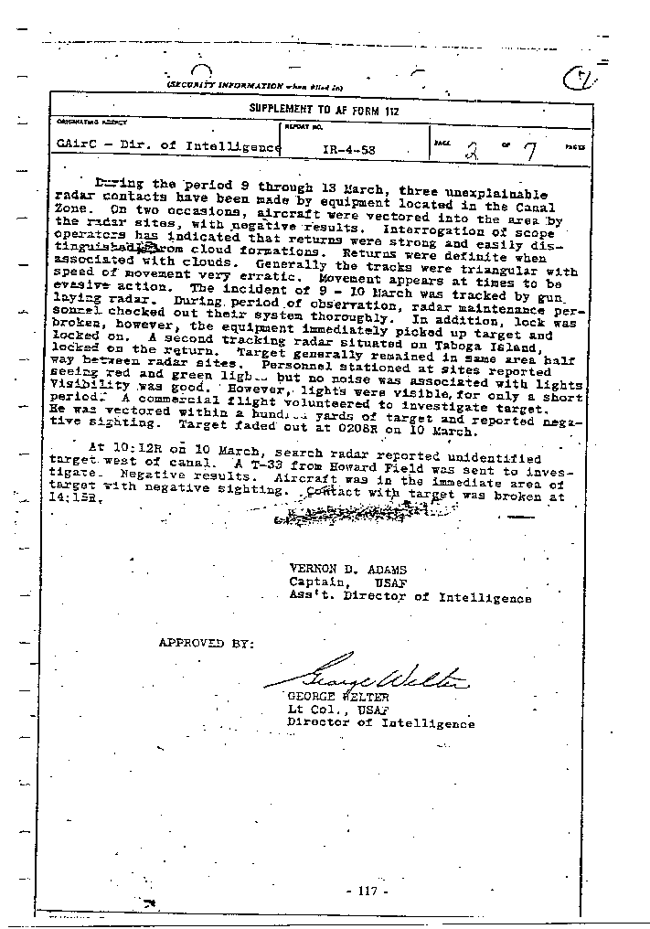 I have a very personal friend that was a B-24 pilot during W.W.II that got into [the] O.S.S. And he was one of the first people into Japan after the atomic bomb was dropped on Hiroshima, Nagasaki. He ended up on Project Bluebook, Section 13, which I believe was the top-secret portion of that investigation. At the time he was a captain in the Air Force. He’s in his late ‘70’s now and he is still being carried on active duty as a captain. I don’t know if he’s being paid but if he’s on active duty he should be a three star general with time and rank and he should be paid. And the whole reason that they have kept him on active duty is to keep his national security oath active because of what he knows. There are certain things that he will not talk to me about because of that security oath even though I had a top secret clearance with the Navy and we are both very interested in the same thing.