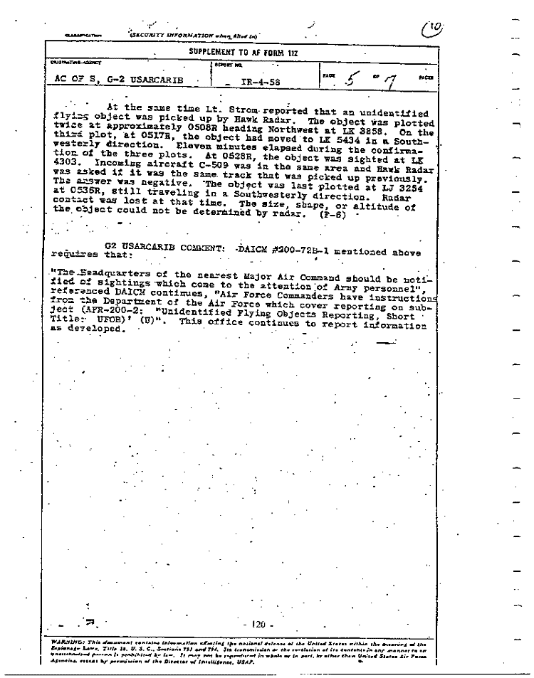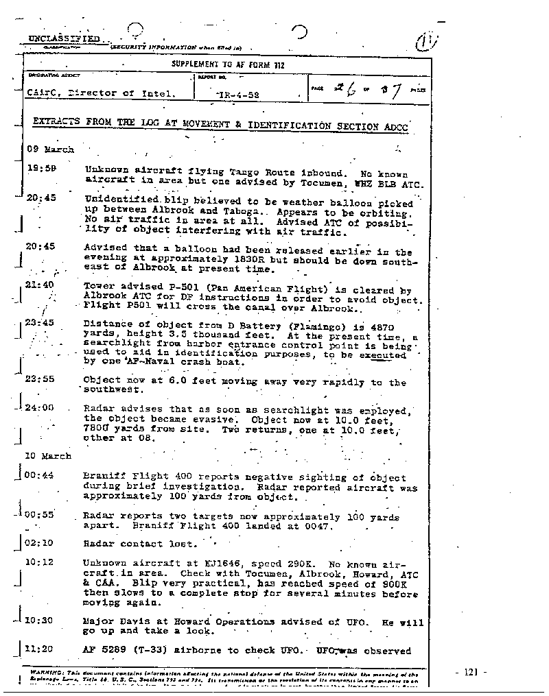 It continued to happen during the year, the last part of ‘57, and up until May of ‘58. It happened at least three more times. And I had radar operator friends that would tell me, well, we had another one of those fast ones last night. And it always was at night…