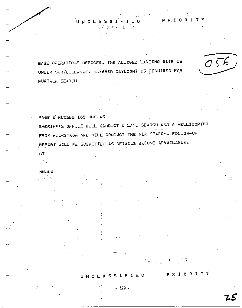 RS: It was the same morning. So that morning we lost anywhere from between 16 to 18 ICBMs at the same time UFOs were in the area and were observed by airmen. Those missiles were down the entire day because we’ve got testimony from Colonel Don Crawford, who relieved the crew at ECHO Flight and he was there when the missiles were being brought up to alert status and he said it took the whole day. So I’m assuming it took our missiles all day to be brought back up also.