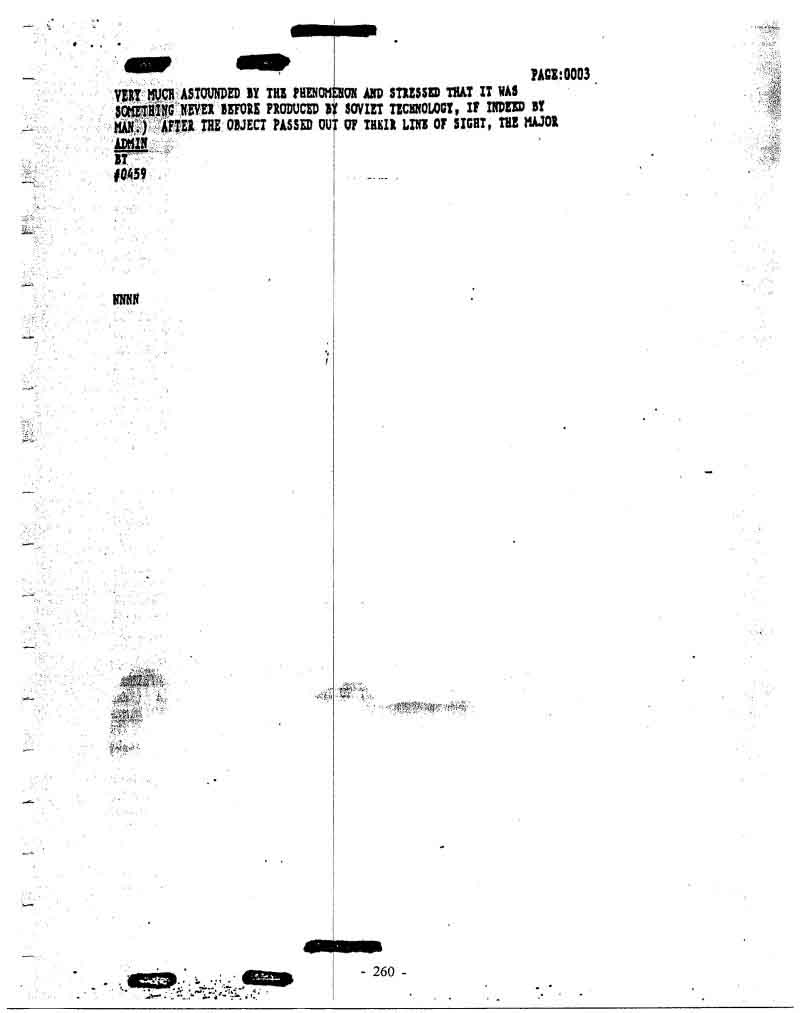 Reports of UFO sightings came in regularly. And evidently somewhere nearer the core of our leadership in the sphere of the Defense Ministry, the Academy of Sciences and so on, a lot of this kind of information began to build up. And not only from ordinary laymen, but from scientists and professionals as well. Military men in general are not inclined to fantasize. They only report what they see, what actually occurs. They are people you can believe. You should not forget that the arms race was still going on at this time, a struggle for military and other priorities. New discoveries in science and technology were being made all the time. The UFOs were something new and not understood. And there really was an idea that they might be some means of gathering intelligence… But it is interesting that one of the official versions from the commission, including among the final points, was the possibility that UFOs belonged to an extraterrestrial civilization! That was interesting! …