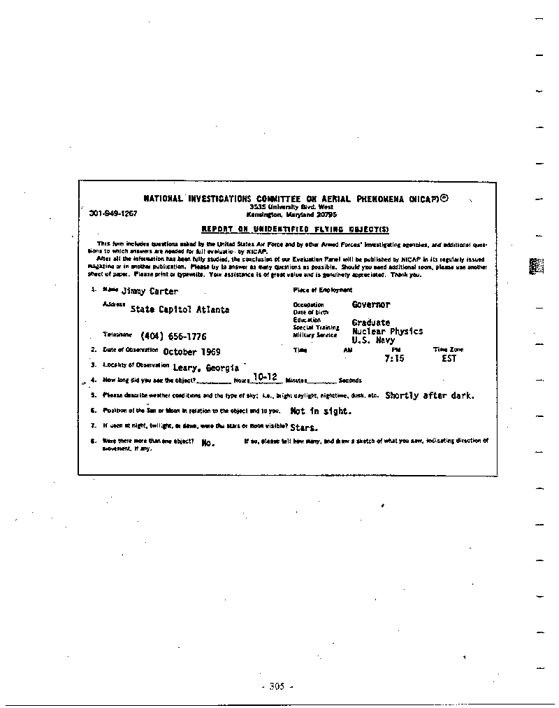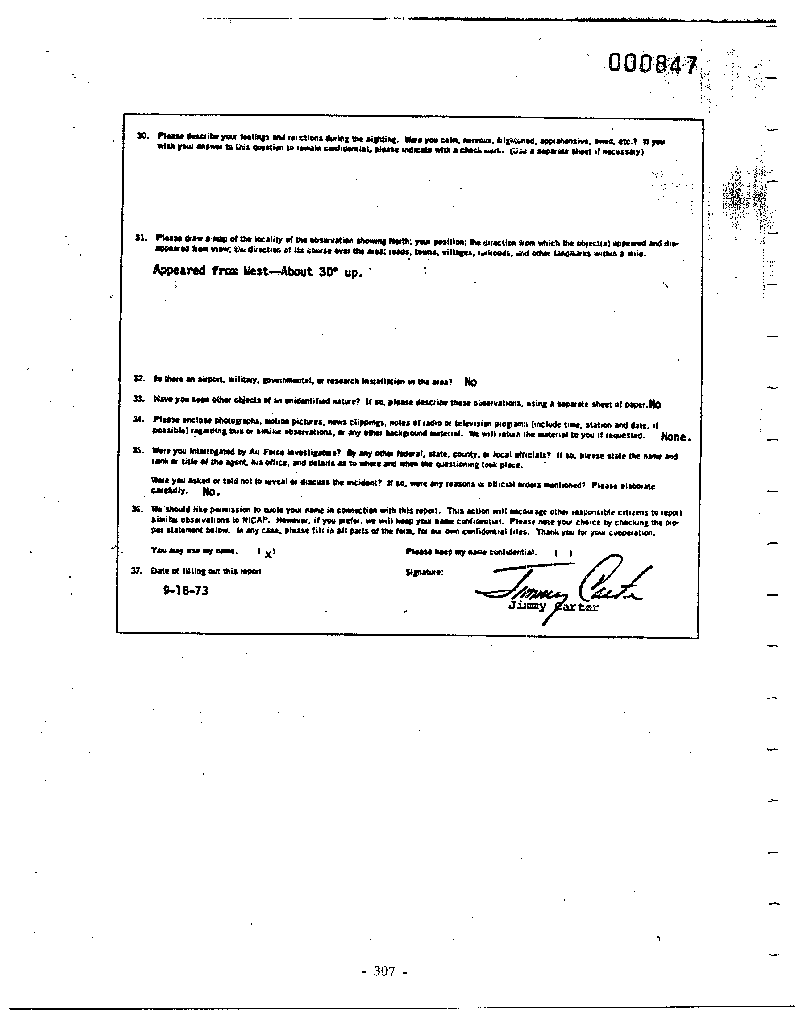 Here we have a President of the United States who came to office under a pledge to open up the UFO issue; and an open study in the White House, and that was squelched…