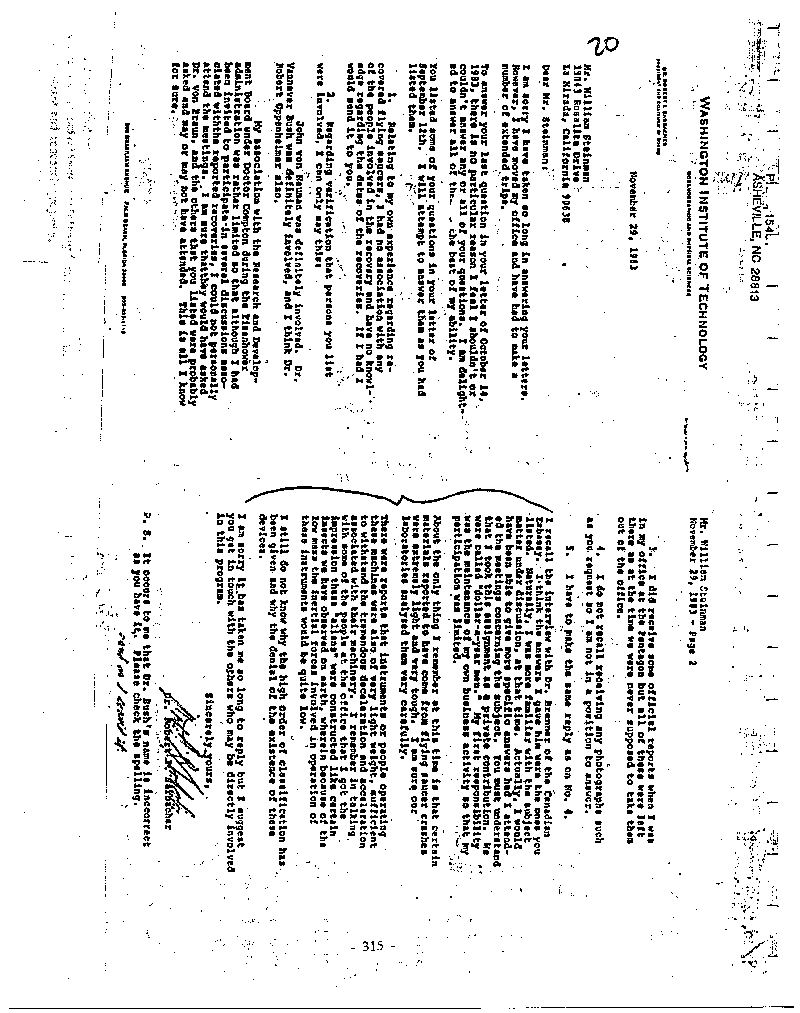 Then, I was four years at the White House and I kept getting reports there but they were just reports. I had all the clearances so I’d get them, even code reports I’d get. I did get one time a report that NSA was getting signals from space, which were not just space noise, or unscrambled, or something you couldn’t read- they were really very perfect and looked like something was guiding a real message. But we were never able to decode it. This was a very coordinated message. It wasn’t space noise or jumbo mumbo or anything like that or just noise coming.