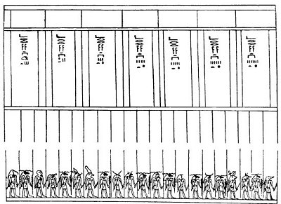 VIII. Gate. REKHET-BESU-AKHMET-TCHAFU-SEPT-PAU-KHAT-TET-SMAM-AN-NETCHNETCH-ATET-SESH-HER-S-EN-SENT-NAH-S.