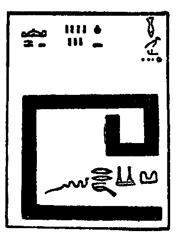 Sekhet-hetepet. (From the Papyrus of Anhai--XXIInd Dynasty.) Sekhet-hetepet. (From the Turin Papyrus-Ptolemaïc Period.)added scenes in which he is depicted doing these things; and the lower part of the picture in the Papyrus has been modified considerably. In the second division it may be noted that Nebseni is seen laying both hands on the back of the Bennu bird; there is no authority for this in the older copy of the picture. In the illustration on p. 55, which is reproduced from the coffin of Sen, in the British Museum (No. 30,841), a still simpler form of Sekhet-hetepet is seen; here we have only nine eyots, which are grouped together, and no inscription of any kind.