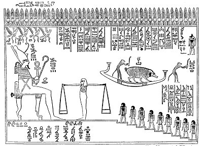 The Judgement Hall of Osiris according to the Book of Gates. (From Champollion, Monuments de l'Égypte, tom. iii, pl. cclxxii.)