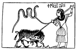 in the Papyrus of Nekht the deceased is seen grasping a chain by which a serpent is fettered, and spearing a pig. The chief point of interest in the whole scene is the fact that the Judgment here depicted is of a more primitive character than that given in the Book of the Dead.