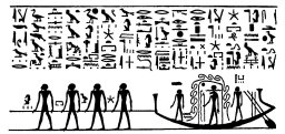 The Boat of the Sun towed by Gods of the Tuat.are described as "gods who are in the entrances," the god who bears the staff has no name. The text which refers to the Sun-god reads:--