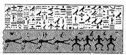 The gate of the Serpent Set-hra.In the middle of the Division we see the boat of Ra being towed on its way by four gods of the Tuat, the god is in the same form as before, and SA stands on the look-out, and Heka obeys his instructions as to the steering. At the head of the