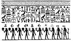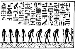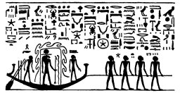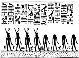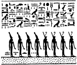 "It is those who are in this picture who make ready for Ra, a way into the eastern horizon of heaven,, and they lead the way for the god who hath created them with their hands, [standing] two on the right hand