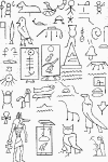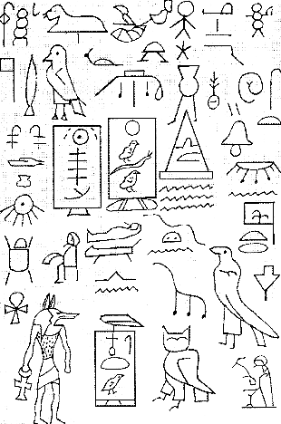 Sobre las rocas de un monte aparecen más de 250 jeroglíficos egipcios, entre los que destaca en un cartucho el nombre de Djedf-Ra (Diodefre), hijo de Keops y nieto de Snefru, lo que sitúa este hecho histórico dentro del Antiguo Imperio y más exactamente durante la IV Dinastía.