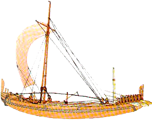 Los barcos egipcios más antiguos que se conocen estaban construidos sobre un armazón de madera y eran lo suficientemente grandes para albergar como mínimo a 20 remeros. Iban equipados con un solo mástil dotado de una vela rectangular y uno o dos grandes remos situados en popa que realizaban la función de timón, siendo capaces de transportar varias cabezas de ganado o el peso equivalente en mercancías. Su actividad comercial se extendía a varios puntos geográficos del Mediterráneo y Mar Rojo.