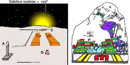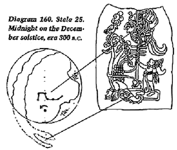the diagram above—that the December solstice sun rises over the stela depicting the demised Seven Macaw. This basically says: the