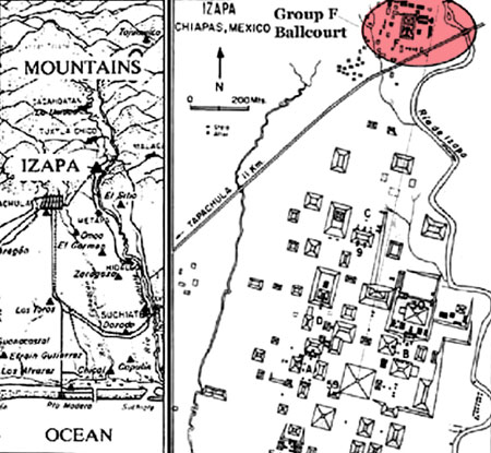 Izapa's location I’m skipping over many related issues now to move right into the monuments of Group F. My basic idea is that the content of the monuments cannot be fully understood unless we take into account the site’s orientation, local topography, and horizon astronomy.