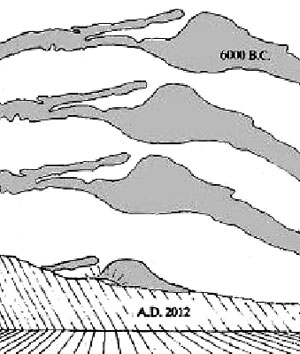Here we see the Milky Way converging with the position of the dawning December solstice sun in a process caused by the precession of the equinoxes. This is a very significant fact: the horizon which we are examining is where a precession-caused convergence between the Milky Way and the December solstice sun has been occurring for thousands of years.
