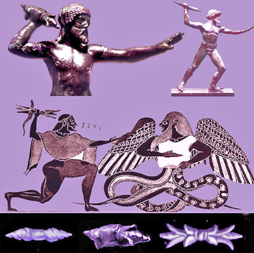 The montage above shows three Greek images of the god Zeus launching