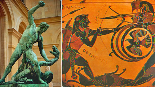 Hesiod describes Heracles leaping into battle "like the lightning of