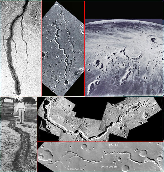 Center: Lunar rilles reveal features remarkably similar to the scars left by