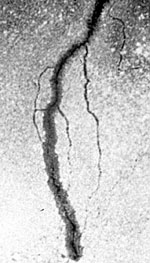 rocky debris. The surface is gouged and sculpted and etched in ways