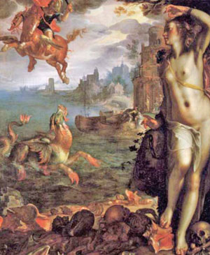 appease the dragon by sacrificing his daughter. But Perseus, riding