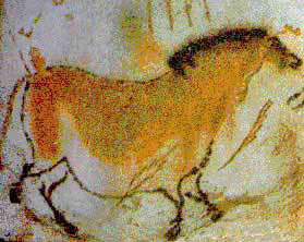 Paleolithic cave painting of a horse, France. LOWER: