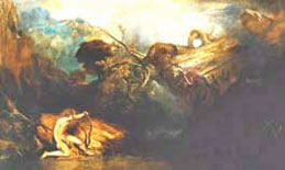 combat. The battle raged amid earthquake, fire, wind, and falling
