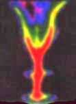 hourglass form of the plasma pinch. The light of the