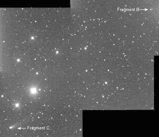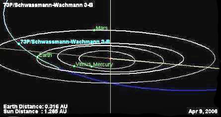 This is why the fragments have had time to deviate from/to each other as the photograph below shows. At the time of its passage in 2001, at the same place on the ecliptic, the Earth was almost contrary to its current position. This year 2006, on the other hand, the Earth and the comet coincide in their orbits perfectly. The figures are based on NASA space simulations in this article only show us the largest of the fragments, fragment B, the current count of the known fragments goes to the letter N.