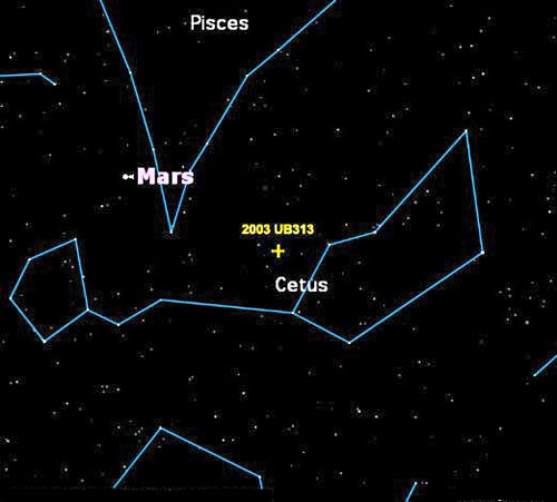 using Starry Night software, shows the position of 2003 UB313