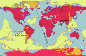 Going to sea in boats will scarcely be an answer, as the turmoil the water will be undergoing will create vortexes that will capsize large and small boats, and even dash well built submarines in deep water. Surviving in the Caribbean, during this violent shift, will be the exception, and will require luck, not planning. This world map (in red) is overlaid with an antipodal map (in yellow)