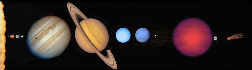 halla el sistema planetario hasta Neptuno y Pluto. Al centro del