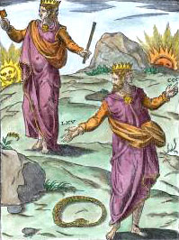comes from this 1608 European Woodcut (shown to the right). Notice