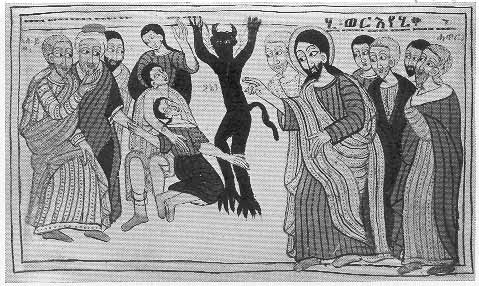 Christ casting a devil out of a man in the presence of the Jews and His Apostles