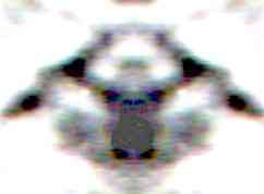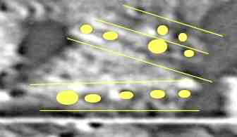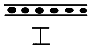 version, right. Underneath the "Strut" is an object easily recognizable as "I-Beam" or girder with lightening holes. This is similar to other such girders just North of the "Dish" in the "Fan" area. It seems to be slightly stressed and bent under the "Strut". It has a central web, raised sides (or flanges) and equally spaced "Lightening Holes". I believe that the middle Lightening Hole is slightly distorted by the vertical line (which may be a defect) passing just through the middle of it. Compare it with the crude sketch below.
