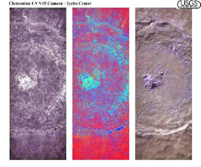 This mosaic of Clementine UVVIS images (below) covers the center of