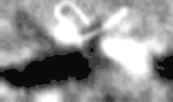 This enigmatic object from frame AS10-32-4822 is literally hanging some seven miles above the Lunar surface. This side by side comparison is from 2 different versions of the same Apollo 10 photographic frame, one obtained by Hoagland and the other by another researcher. In fact, Hoagland has now identified some nine versions of this photo in various archives around the world. Evidently part of "power winder" sequence of photo's taken by the Astronauts, this allows for positive verification of the reality of this object.