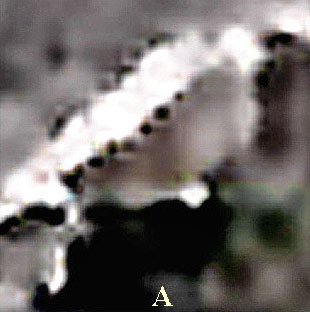 Item "A" demonstrates a strange white rectangular shape