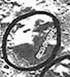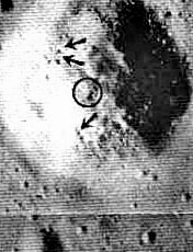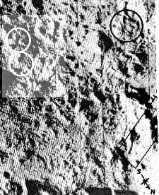 **Plate-2 shows what George says is a site in The Sea of Tranquility filled with manufactured objects and some alien vehicles. The NASA photo used is 66-H-1612, as shown here from his book. It can be crossed referenced to, L.O. II. H-42. He says, the little round objects are "Oval" shaped and look artificial.