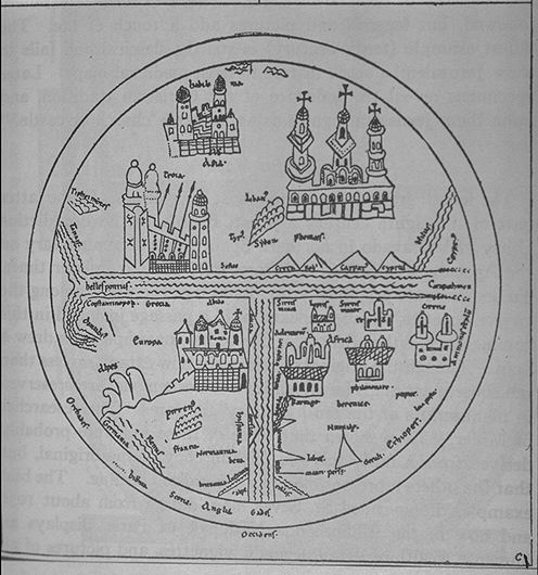 T-O map, Sallust from Miller via Wright. (oriented with East at the top) Slide #205 Monograph