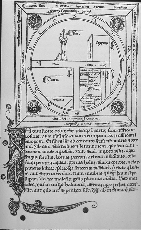 T-O map, 14th century from a Sallust manuscript, Bellum Jugurthinum. oriented with East at the top