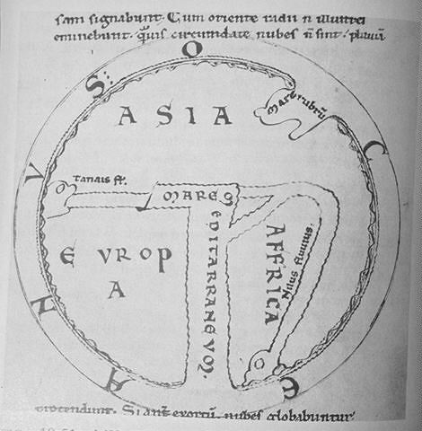 T-O map, from 12 th century edition of Bede's De natura rerum