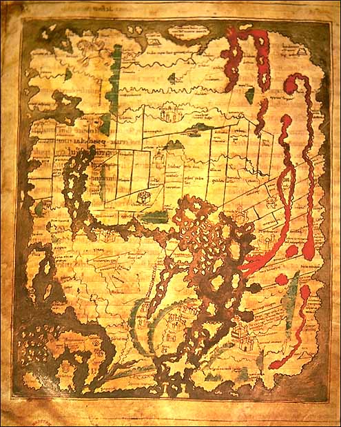 Anglo-Saxon, or Cottonian world map, 900 A.D. (oriented with East at the top)