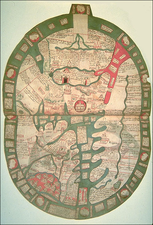 World Map by Ranulf Higden, from the Polychronicon, 1350 (oriented with East at the top)