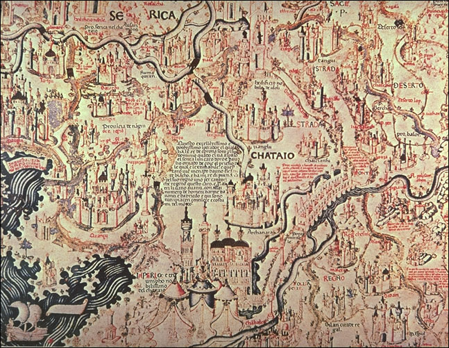Fra Mauro's Mappamundi, detail: Asia (China) (oriented with South at the top)
