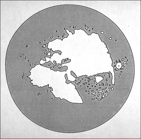 detail: outline drawing of circular world map