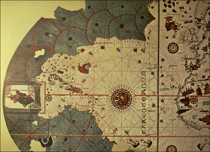 Portolan Chart of the world by Juan de la Cosa, 1500; detail: Western Hemisphere only