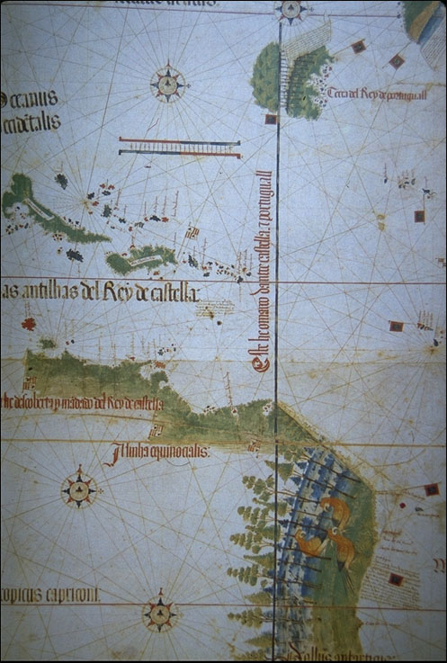 Cantino World Map,detail: Newfoundland, West Indies, South America Monograph Cantino's world map, 1502 Cantino's world map, detail: Europe, Africa Cantino's world map, detail: Asia
