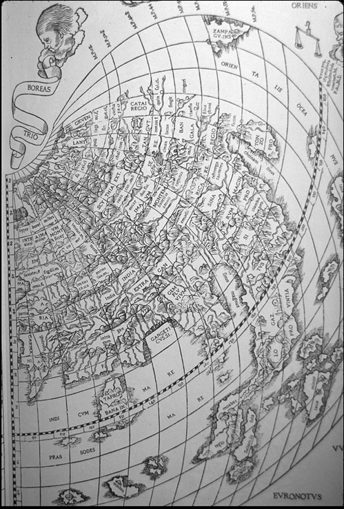 world map, Bernard Sylvanus, detail: Eastern Hemisphere,1511